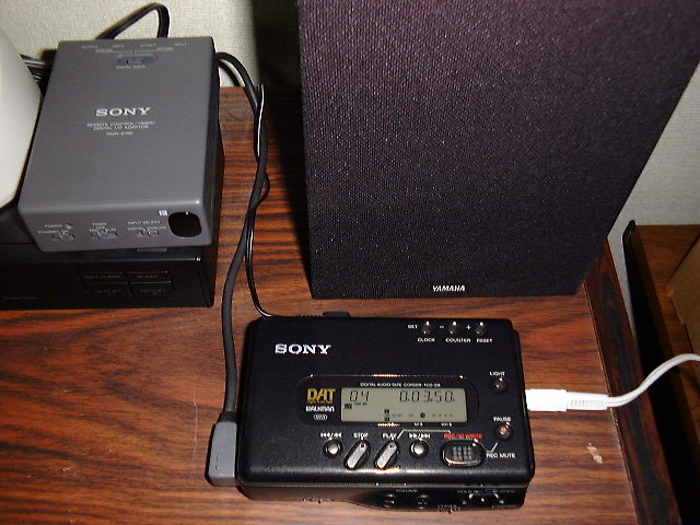 メイン:SONYのICレコーダ(2代目)ICD-66 タイマー用とサブ1:TalkMasterUで、タイマー録音用です。20プログラムできます。 サブ2:MDレコーダです。SONYのMZ-RH1でMDの内容をUSBでPCに転送できます。 今までのメイン機です。新し録音からは一応引退しました。 DATは録音日時が記録できるので利用しています。 SONY DAT wolkman TCD-D8+タイマー録音用制御機 TCD-D8は確認用にしました。 TCD-D8が時々機嫌を損ねるので、新しいのを追加購入しました。 TCD-D8が入手できなかったので、しかたが無くTCD-D100にしました。 消費電力、日時等の電池でのバックアップ等良い面もあるが、ボタン等が小さく操作がしにくいです。 |