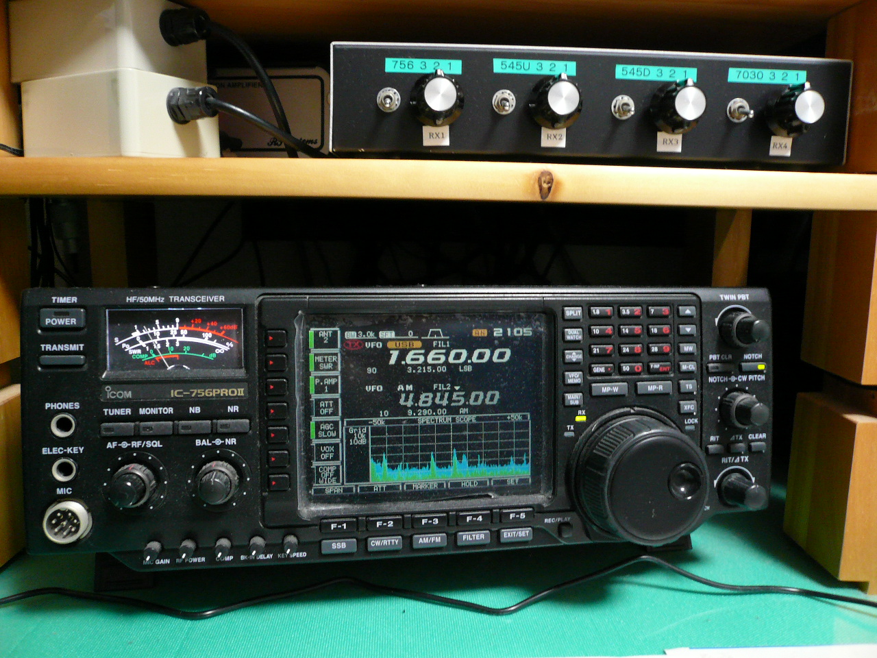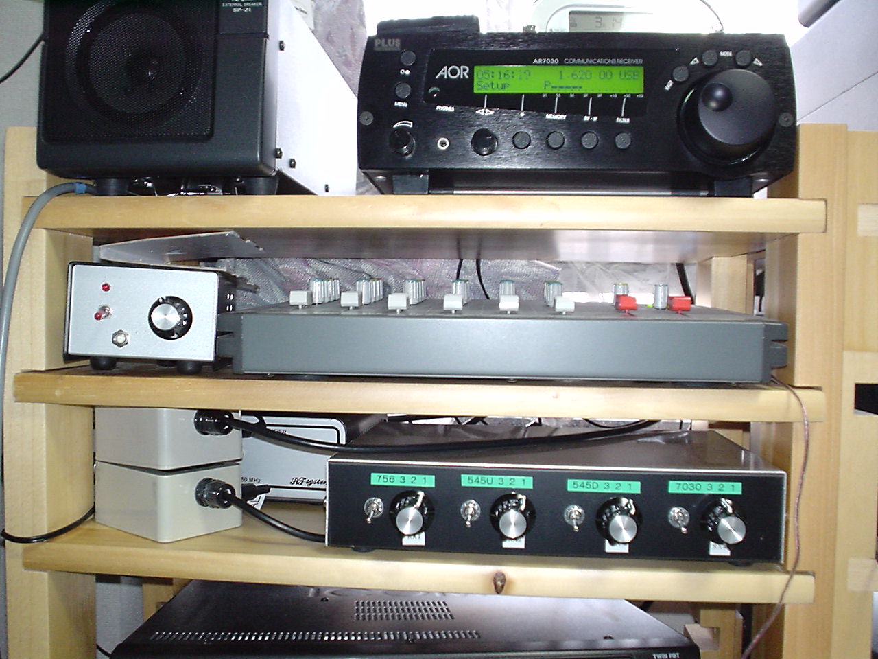 ・ AR7030Plus リモコンでしか操作ができないのが残念です。WMがメインでない私には・・ ・ NRD-545+・NRD-545 OMさんに2台も使っていることが信じられないと言われました。 私の用途は録音時にSSBのUSBとLSBとで録音して良い方をHP等で利用するためです。 HP等に載せるには、7030や756より音にメリハリが有って聞きやすいと勝手に思いこんでいます。 ・ IC-756PROU アマチュア無線機の受信部分だけを利用→結局バンドスコープになっています。 ・ 150kHz 幅で一括録音できます。結果は、HDD等に書き出しします。当家では、X-band で威力を 発揮しています。 |